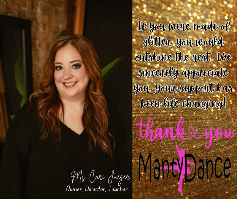 Ms. Cari, is the owner, director, and teacher of MantyDance. Her company has had and continues to have a very positive impact on the local community and even beyond into the more famous areas of dance as well! Cari believes in empowering her students to be the best they can be always but while also enjoying what they do along the way. Shes is naturally creative and has some unique and intriguing ideas. Together Jen and Cari can be some creative forces. It is always enjoyable working closely with Cari and her company. She has always been our biggest support, has inspired Jen in many ways, and continues to be a big part of the reason AFDLLC has grown so successfully. We could never thank her enough! We are all so very blessed to have her as a part of our journey always.